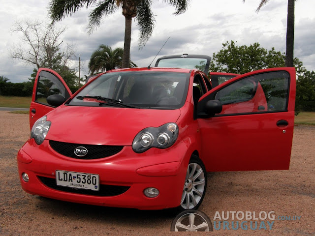 BYD llegó a nuestro mercado en 2009 y su primer modelo fue el F0. Un compacto urbano de 3,460 m de largo, motor tricilíndrico de un litro y que exteriormente se asemeja con el diseño del Toyota Aygo/Peugeot 107/ Citroën C1. Curiosamente de esos tres modelos el único que llega a nuestro país es el 107 importado por Sadar, que a su vez es el importador de BYD. De todas formas entre los dos modelos hay casi U$S 5.000 de diferencia, a favor del modelo de procedencia china.