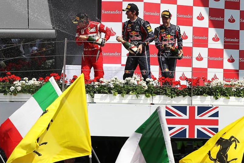 | Alonso y los tifossi de festejo en tierras británicas, mientras Red Bull suma puntos para el campeonato. (Fuente) |