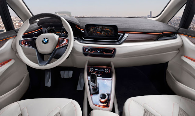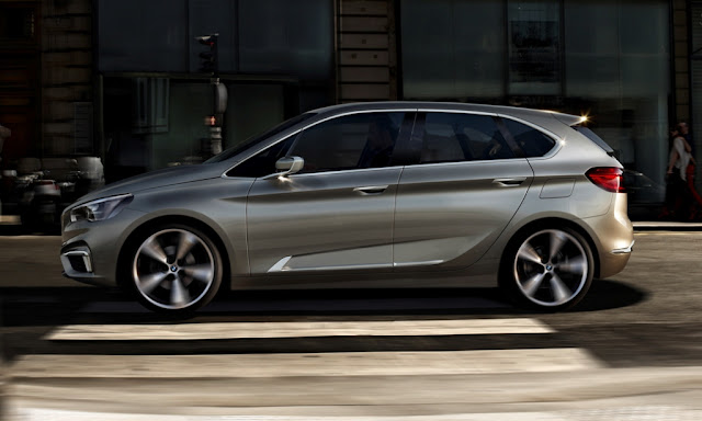 El BMW Concept Active Tourer combina las dimensiones compactas de un monovolumen y el diseño deportivo de BMW. El resultado es agraciado y menos controversial de lo que podía esperarse. Tiene una longitud exterior de 4.350 milímetros, un ancho de 1.834 mm y una altura de 1.560 milímetros. Lo más destacado es la gran distancia entre ejes de 2.670 milímetros, que sumada a la línea elevada del techo, el motor montado transversalmente, y la disposición de la tracción delantera, redundarán en un habitáculo espacioso.