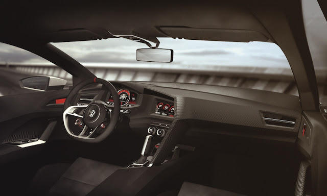 Por dentro, siempre y cuando nos guiemos por los renders que publicó Volkswagen, este prototipo muestra un habitáculo bastante minimalista, y según la nota de prensa, lleva tapizados en cuero y Alcántara, apliques en fibra de carbono, y al igual que el Golf 7, la consola central "mira" al conductor. En el volante lleva las levas para gestionar la transmisión automática secuencial de doble embrague DSG, y en el panel central, encontramos un comando para seleccionar modos de manejo, denominados: Street, Sport y Track.