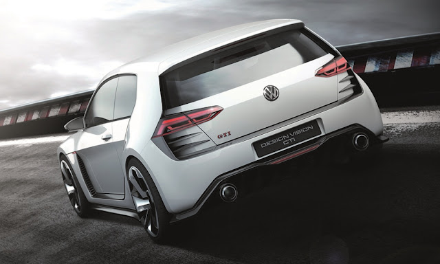 Pese a que aparenta ser más grande en todas las dimensiones, que el GTI de calle, este Design Vision es 15 milímetros más corto, quedando en 4,25 metros, 57 milímetros más bajo, aunque sí es más ancho, pasando de 1,79 a 1,87 metros. Obviamente, las trochas delantera y trasera son más anchas, con 57 y 63 milímetros extra, adelante y atrás, respectivamente.