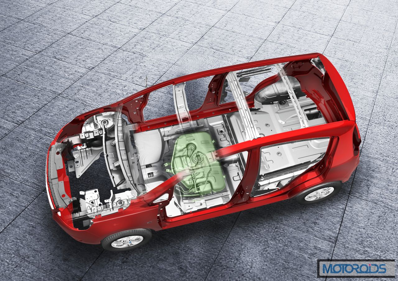 Las plazas traseras son de los puntos más positivos del Sail. Amplias a lo alto como a lo ancho, se ven favorecidas por el piso casi plano, junto con el tanque de combustible ubicado en posición central (ver) y no abajo el asiento, lo que permite un espacio en su lugar para guardar objetos que necesitemos tener a mano (ver).