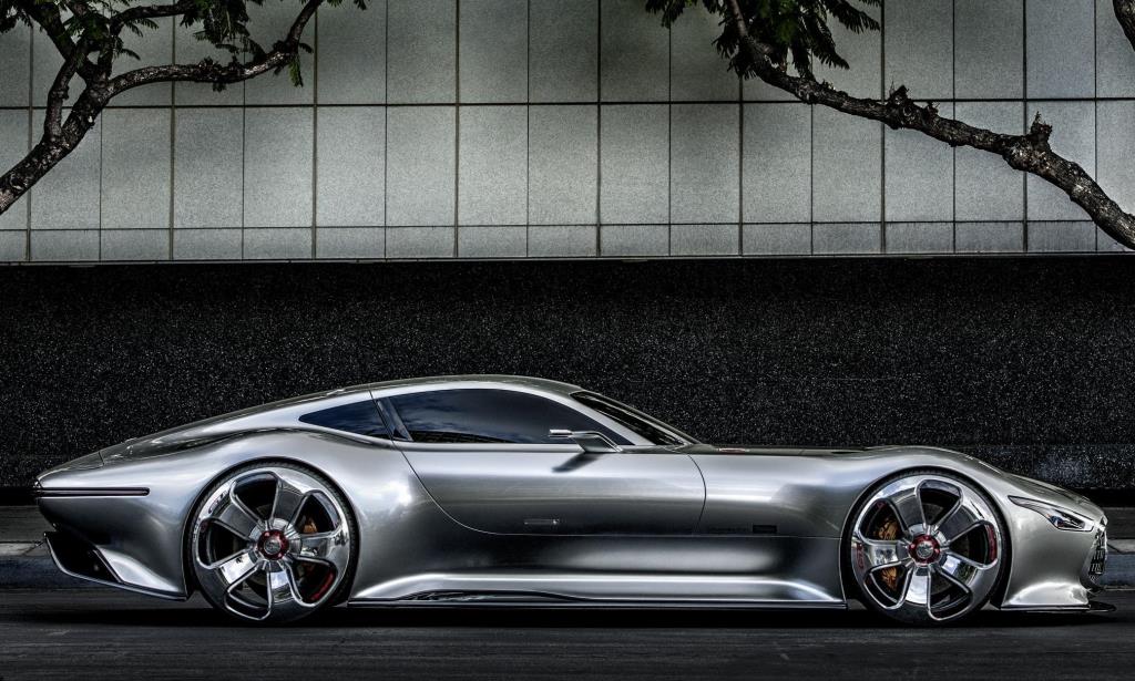 Las proporciones son las clásicas de un deportivo biplaza: el largo capó, una distancia entre ejes generosa, y una cola corta. Además en el caso de este concept, la carrocería toma la forma de una gota de agua que ya sabemos lo eficiente que es aerodinámicamente hablando, y todo completado por un trabajo de pintura que simula a la plata, obviamente, otro guiño al pasado para las "flechas de plata" que defendían los colores de Mercedes-Benz en las pistas. Atrás llaman la atención las ocho -sí, leiste bien- salidas de escape.