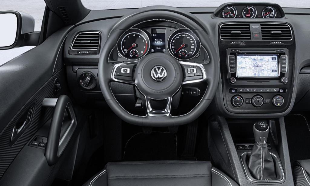En el caso específico de la variante más potente del Scirocco, la "R", también hay reformas. Cambian los paragolpes, retrovisores, pinzas de freno “R”, salida de escape doble cromada, tomas de aire más generosas que en la versión domesticada, un alerón de techo más prominente, y de serie llantas de aleación de 18” y opcionalmente de 19”.