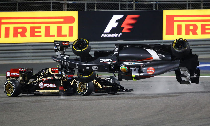 Promediando la carrera, nuestro piloto de demolition derby preferido, Pastor Maldonado entraba pasado en la frenada al final de recta y todo terminó con un vuelco de Esteban Gutiérrez, enganchado por el auto del venezolano. Afortunadamente el mexicano salió ileso. El Safety Car salía a pista, mientras el McLaren de Magnussen quedaba KO.