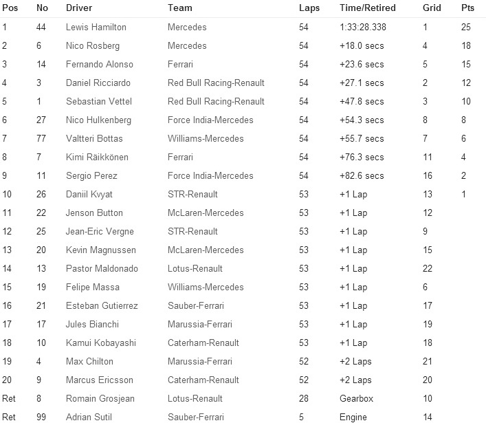 CLASIFICACIÓN FINAL GP DE CHINA 2014