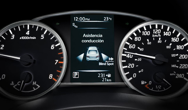 EQUIPAMIENTOS: El nivel Advance del Sentra ofrece de serie: doble airbag, frenos ABS con distribución y asistencia de frenado (EBD/BA), anclajes LATCH y TopTether para sillas infantiles, cinco cinturones inerciales de tres puntas, cuatro apoyacabezas, luces traseras LED, pack eléctrico (cuatro levantavidrios, espejos, y bloqueo), llave inteligente iKey, botón de encendido/apagado del motor, dirección eléctrica, volante multifunción en cuero con regulación en altura y profundidad, sistema de audio AM/FM/CD/MP3/Aux-In/USB/iPod Ready/Bluetooth con pantalla a color de cinco pulgadas, seis parlantes, computadora de a bordo con pantalla LCD TFT a color de cinco pulgadas Advanced Drive-Assist Display (ADAD), alarma, aire acondicionado manual, asiento del conductor con ajuste de altura manual, tapizados en tela, respaldo trasero 60:40, apertura interna del baúl y depósito de combustible, faros antiniebla delanteros, cruise control, y llantas de aleación de 16 pulgadas con neumáticos 205/55 R16, entre otros ítems.
